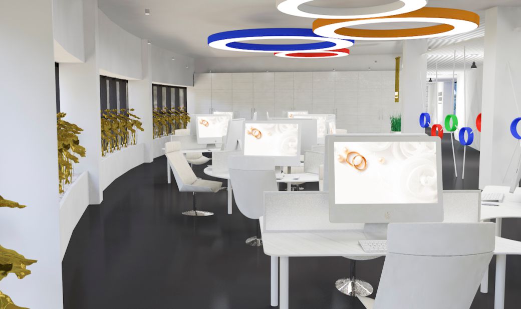 用珠宝的外观作为吊顶造型,直观传递园区的行业属性。